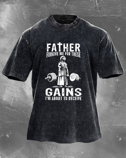 FATHER FORGIVE ME FOR THESE GAINS T-SHIRT