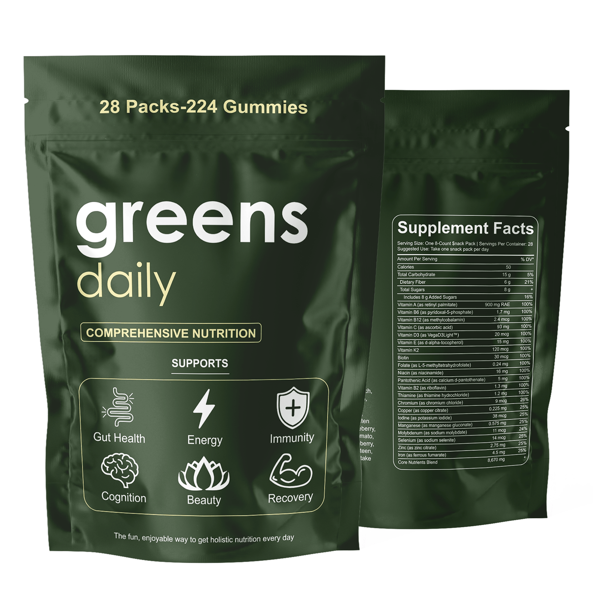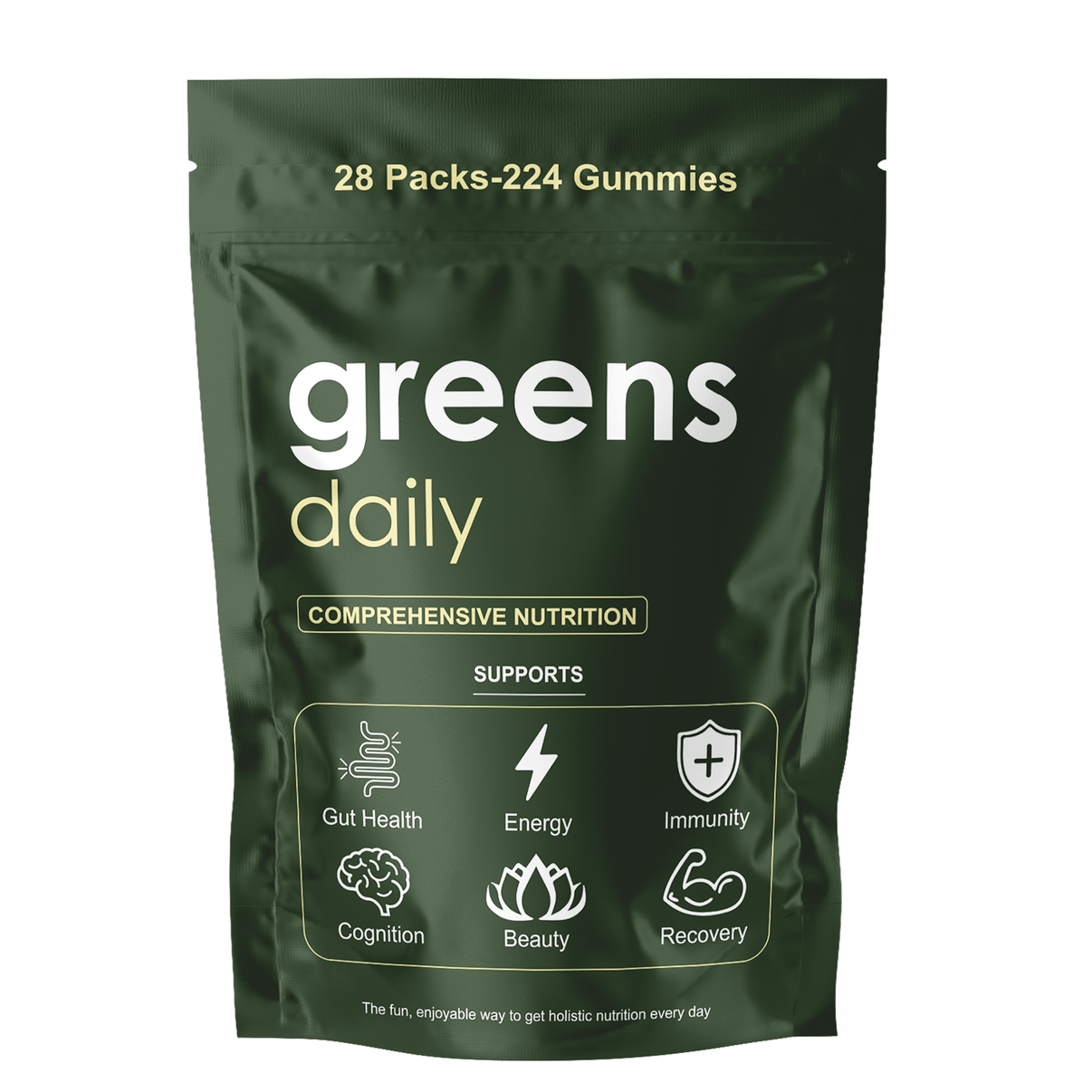 Erlebe die Kraft der grünen Ernährung – einfach und lecker! Greens Daily sind köstliche Gemüsegummibärchen, angereichert mit 60 nährstoffdichten Zutaten aus ganzen Pflanzen, die darauf ausgelegt sind, deine Gesundheit jeden Tag zu unterstützen.
