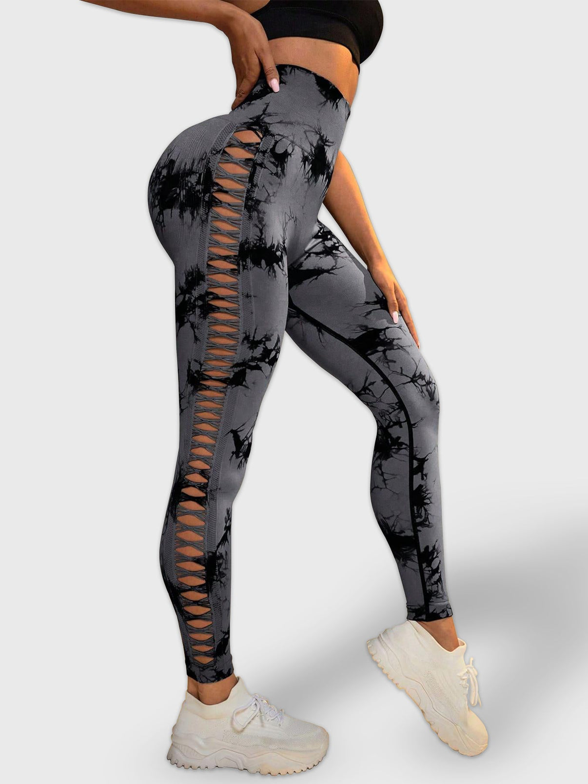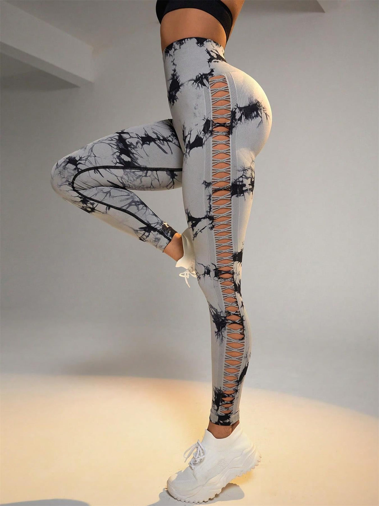 Die dekorativen Seitenbänder und das von Tie-Dye inspirierte Muster verleihen einen edgy Look, während das dehnbare, formende Material dort anhebt und formt, wo es zählt.
